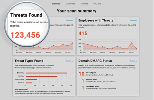 Haga su análisis gratis ahora y descubra las amenazas que no detectan las soluciones heredadas, incluido Proofpoint. Es rápido, seguro y no afecta al rendimiento de su correo electrónico.